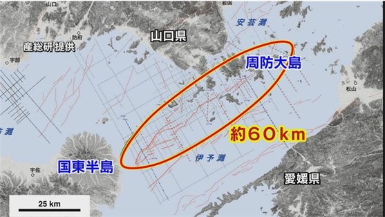 しかし、5㎞南には国東半島から周防大島にかけて60㎞に達する海底活断層が存在し、最近の知見ではマグニチュード7以上と想定されている。
